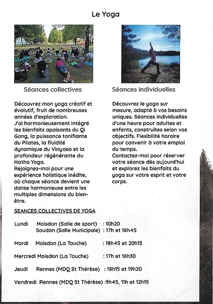 Fortes de nombreuses formations et expériences depuis 1999, mes compétences en kinésiologie et en hypnose viennent enrichir nos séances. Ces outils précieux se mêlent au yoga, apportant une profondeur et une variété de perspectives pour vous guider vers un bien-être holistique.